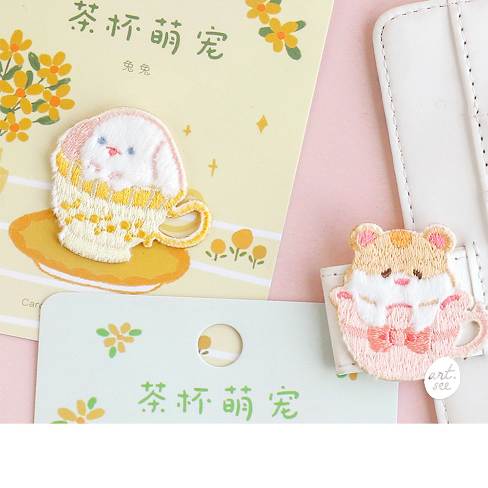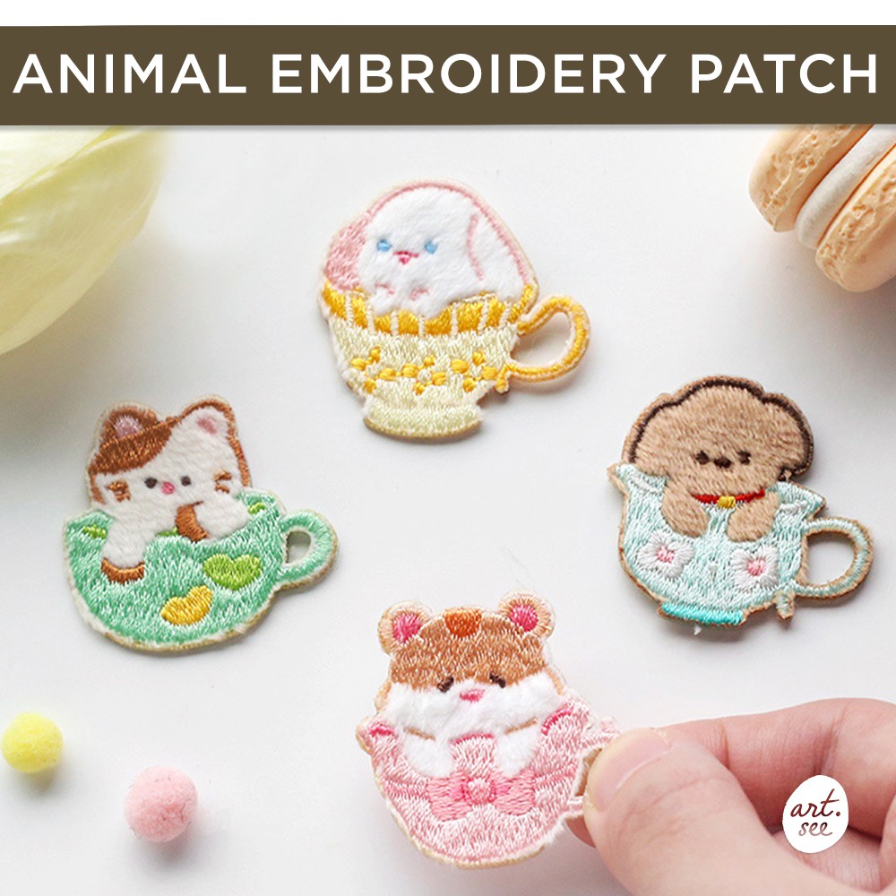 Teacup Animal Embroidery Patch Sticker Shopee Indonesia